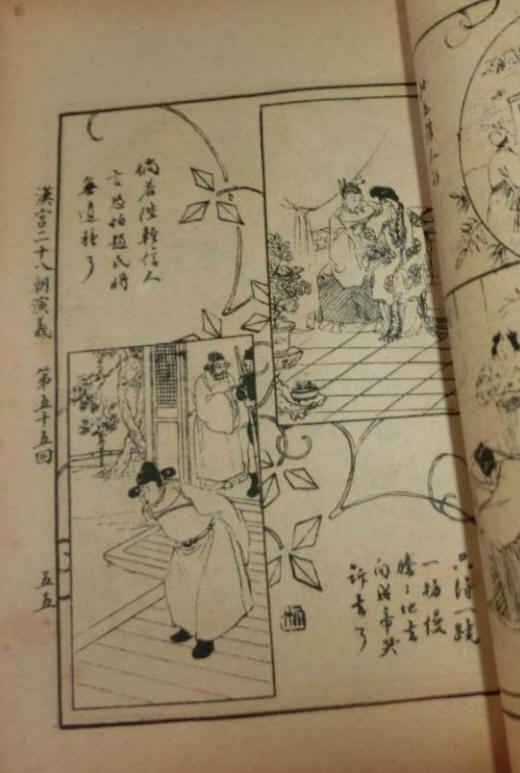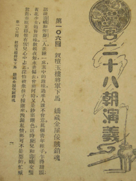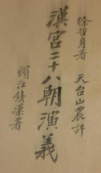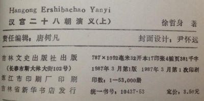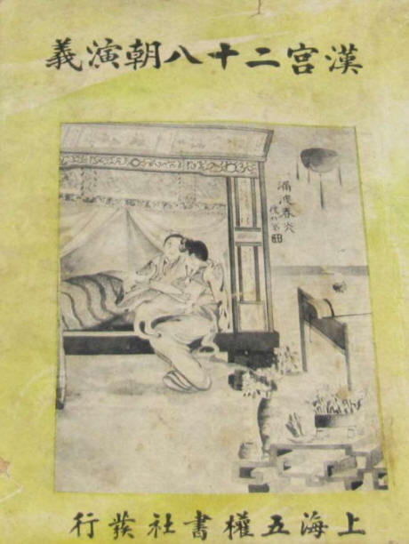 汉宫二十八朝演义,民国十六年一月付印,民国十七(1928)年二月出版,民国十七年十月发行。上海五权书社出版,120回。天台山农点评、朱凤竹绘画。精装2册,定价10元;洋装(平装)8册,定价6元。