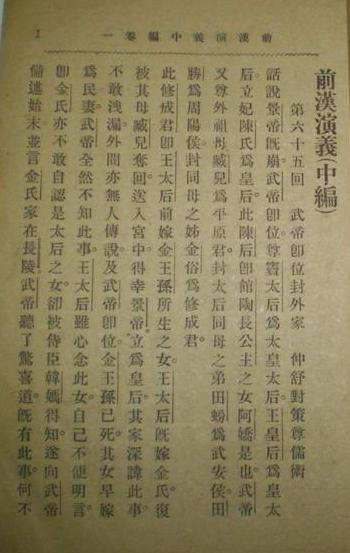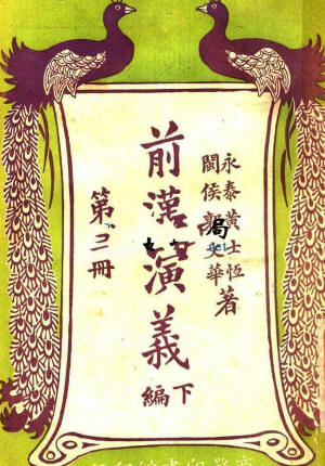 前汉演义,200回。题永泰黄士恒著。全套分上中下篇(每篇约为5册),其下篇又题“永泰黄士恒、闽侯郭文华著”。民国7年商务印书馆出版。 此书又名《西汉演义》,网上多称《西汉野史》。 从刘邦建立汉朝起,经历王莽篡位,到刘秀复汉止,上接《秦汉演义》。主要叙述军国大事、朝野轶闻。基本史实从《史记》、《汉书》来,文字通俗、文笔流畅,人物刻画精彩。 作者黄士恒,清末民初,福建永泰人。小说家、教育家。曾捐资创办西城小学堂。 同名小说另有蔡东藩《前汉演义》(《前汉通俗演义》),时间段上相当于黄士恒《秦汉演义》+《前汉演义》。