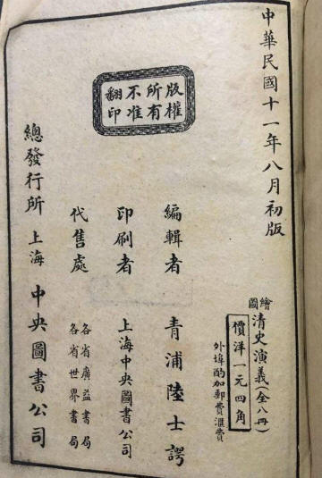 ↑清史演义全图,上海民众书局发行