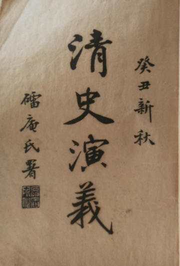 ↑清史演义初集,大声图书局民国2年(1913年)