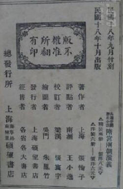 隋宫两朝演义,6册100回。民国十八(1929)年十月出版,上海硕望书店发行。张恂子著,王小逸评(本书未录)。精装2册,定价8元;平装6册,定价6元。 本书所录周瘦鹃序,作于民国二十二年,不知为第几版序,此外还有赵序、黄序,本书不录。 后又称《隋代宫闱史》、《话说隋朝三十七年》等,当是书商更名。 本书主要叙述自隋文帝杨坚夺取周室天下,经隋炀帝杨广,并及两位恭帝杨侑、杨侗,共三十余年间的隋朝历史。其中主要讲述宫闱秘辛、朝野轶事。虽然书中情节多有杜撰,但开凿大运河的壮举、隋堤广植柳树的诏令(赐柳姓杨,后称“杨柳”),以及扬州观琼花的韵事,都给中国历史和文学上平添了诗人化的一笔。“其兴也勃焉,其亡也忽焉”,隋朝短暂的历史足以警示后人。 作者张恂子,生平未详。