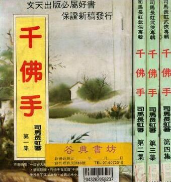 司马长虹(1924-1997) 本名徐国隆,笔名除司马长虹,还有谭谈、徐羽、徐行、徐垒、徐凯等等。1924年出生陕西潼关,原籍安徽省颍上县。将门之后(父亲是国民革命军第六路第三军军长徐希贤将军),自幼随父转战南北,及壮投笔从戎。1948年秋赴台,经人介绍认识了兵团司令李延年,很快被委以重任,担任了其机要秘书,在军中接受了高等教育,后又担任了金马前线心战指挥部主任。因李延年失宠下台,审时度势,厌倦军旅角逐,遂脱下军装,毅然挂剑从文,开始了辛劳四十载的笔耕生涯。 先在台南创办了“志明出版社”,该社停办后,又与友人在台北创立了“宏信出版社”。几十年来一直奋力创作,耕耘不息。著作可分五大类:一是反满,二是抗日,三是乡土,四是武侠,五是惊险。作品在台港澳,及海外一直畅销,成为公认的“乡土文学”泰斗。主要作品有长篇小说《千佛手》《千佛山》《夺命金牌》《野狼坡》《拜山》《响铃刀》《野汉》《风雪归》《金弹弓》《玉棺劫》《女屠户》《洞庭雷》等。 因有许多投机者盗印剽窃,以假乱真,为此笔名一改再改,直到用谭谈做笔名,才有所扭转。共著书200余部,百万言长篇多部,其中30多部作品被邵氏电影公司搬上银幕。 徐氏小说思想性十分鲜明,具有反抗压迫、除暴安良、惩恶扬善等积极向上的精神。其中光辉之处,是以强烈的爱国主义激情和冷漠深刻笔触,热诚地颂扬人民大众浴血苦战抗击外侮的斗争业绩,无情地揭露侵略者的凶残罪行。这些弘扬民族正义的主题内容,占有他作品的绝大部分,形成了他创作思想的“主旋律”。人物形象鲜明,故事情节生动,熔乡土民俗、侠义传奇、述志言情于一炉。这种雅俗共赏的境界,形成既有积极思想内容,又有为中国人民大众喜闻乐见艺术形式的民族风格,所以受到读者的喜爱。 1988年与家乡的弟弟——著名画家徐德隆、作家徐斌隆取得联系,1989年终于如愿得偿回国与家人幸会,先后回国六次。原本想落叶归根回乡定居,遗憾的是没能如愿。1997年秋,病故于台中医院,享年74岁。因毕生致力于文学创作,终身未娶,身后并无子女。 《千佛手》各版本封面: