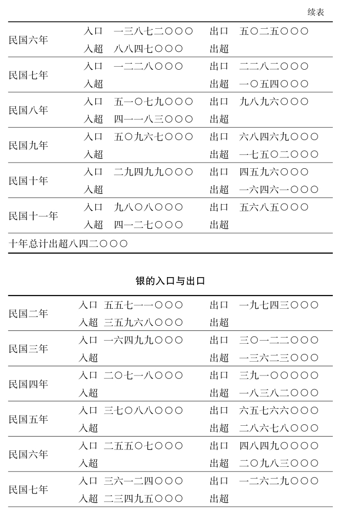 (一九二三年十一月二十日) 我们向来听见人家说“漏巵”[1],说“利权外溢”,便惊心动目的觉得这是中国贫乏的原因。但是究竟什么叫利权外溢呢? 我们普通的想法,总以为利权外溢是说外国人把中国的金银,一年年囊括而去了。所以中国人民一天天困穷得不能生活。但是外国人何曾囊括了中国的金银去?我们试看下面的一个表,我们必定很惊讶,觉得利权外溢四个字不知要怎样解释了。 据海关贸易总册的表如下(以海关银两为单位) ![]() ![]() ![]() 照上表所列,从民国二年到民国十一年出入口相抵,金之输出的仅八十四万余两。而银之输入的一万九千余万两。换句话说,中国的金流出的价值,十年不及海关银一百万两。而外国的银运入的,却几乎到海关银二万万两。然则国内所有的金银现货,比从前应多。外人何曾囊括我们的金银去呢? 我们再看上表所列,金银的出超入超都是没有固定的事,虽然十年之间金之出超有六年,然在民国八年金入超四千余万两,几可以抵民国二三四年出超的总数。而银的入超在民国九年为数九千余万两,仅此一年已可抵民国二三四五年出超总数而有余。由此可见金银不但无为外人囊括之忧,而且反每每很拥挤的从外国流到中国来了。 我们普通的想法,总以为我们向外国借款,便会有金银流入。我们向外国还本付息,支付赔款,以及通商时洋货入口超过土货出洋,便会有金银流出。但是我们就实地考察,亦全然没有这一回事。 今请以民国五年为例。民国五年照上表金之入超为一千一百八十万余两,银之出超为二千八百六十七万余两。两抵出超价值约海关银一千七百万两。但试将借款、还债、贸易盈亏合起来计算,便知道这个数目很不能代表中国支付于外国之款额。请大家注意下面的材料。 民国五年的向外借款,今据申报馆最近之五十年书中贾士毅所列的长短期外债,可共得下之数项: 兴亚公司借款日金五百万元。 中日实业公司借款日金二百万元(为汉口造纸厂)。 教育部欠正金银行学款日金十万元(为接济留日学生)。 右[2]〔以上〕三项共合海关银约四百六十一万两(以一元五十四钱合银一两)。 芝加哥银行借款美金五百万元(以烟酒公卖税抵押)。 右一〔本〕项合海关银约六百三十三万两(以七十九仙〔美分〕合银一两)。 教育部欠华比银行学款英金三万七千○九十七镑一先令三辨[便]士(为结欠欧洲留学垫款)。 右一〔本〕项合海关银约二十五万两(以三先令三辨[便]士又十六分之十三合银一两)。 农商部欠中法银行十二万元。 教育部欠仪品公司二十万元(为北大添筑寄宿舍)。 右〔以上〕二项合海关银约二十一万两(以一元五角四分合银一两)。 三妙尔公司汉口商埠垫款公砝二十一万三千两。 审计院欠道胜银行建署借款公砝十二万两。 右〔以上〕二项合海关银约三十四万两(以一两○五分五厘五毫合银一两)。 以上合海关银系照海关贸易册民国五年平均核算的汇兑币值,与海关税务纪要所列各口关银与各口通行银两比较表而计算。 照上述九项借款,总共借入约一千一百七十余万两。(最近之五十年中国大事表财政沿革栏,民国五年尚有广东向日借款六百万元,天津纱厂借款六十万元,未计算在内)。 民国财政史公债偿本付息表中列: 长期外债共需支出一万○九百八十九万余元(连庚子赔款三千九百余万元在内)。 短期外债共需支出一千六百六十五万余元。 交通部外债共需支出三千四百六十万余元。 右〔以上〕三项合海关银一万零四百六十五万余两(以一元五角四分合银一两)。 海关贸易册民国五年华洋贸易表列: 洋货进口价值净数(即除去进口货复往外洋之货价)五万一千六百四十万余两。 土货出洋价值总数四万八千一百七十九万余两。 两抵应入超三千四百六十万余两。 总括上面所说,民国五年借入外债总共不过一千余万两。而外债偿本付息支出须一万万余两。入口货超过出口货而贸易上又亏损三千余万两。这种情形,以常识猜度,总应流出现金一万二千万两以上。何以金银两项合计,出超(即流出国外的)不过一千七百万两呢? 即以去年而论,金之入超四百一十二万余两,银之入超三千九百五十七万余两。去年并未听说有何大宗借款成功,而华洋贸易的入超(即我国贸易上的亏损)在二万九千万两以上,外债偿本付息还未计算在内。我们试想贸易的亏损近三万万两,何以金银的输入反会超过输出?更何以金银输入超过输出的数目竟能达四千万两以上?这不更是令我们惶惑不解了么? 由这看来,可以即刻了然我们以前的误解。我们以前以为既是要偿还外债本息,支付赔款,输入又超过输出每年二万万两左右,常以为金银一天天被外人囊括而去。现在就事实复按起来很可决定其为不然。 然则我们为什么会贫乏的呢?请大家想一想。 有人说我们的贫乏,不是因金银被外人囊括去了,是因他们把我们的原料运载而去。但是这个话仍有些不尽然。第一,我们的原料,倘若我们原本不能制造,便让外人运去,对我有何妨碍?第二,外国人要我们用不着的材料,还可因以为中国开创一笔生意,多养许多无业的人,去运售给他。第三,原料的输出固多,然输出的亦不尽系原料还有布匹、绸缎、陶、瓦、磁器、盐、茶、席、伞等各项成品。输入的成品固多,然输入的亦不尽系成品,还有矿砂、木材、橡皮、棉花等各种原料。本来贸易乃两利之道,成品与原料的出入,